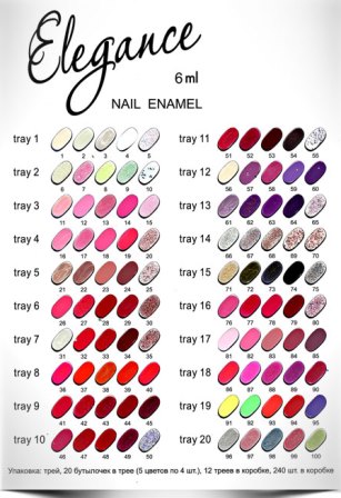 Упаковка: трей, 20 бутылочек в трее (5 цветов по 4 шт.)